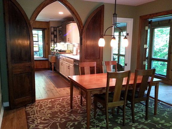 ARTFUL, CONTEMPORARY MOUNTAIN HOME designed by David Patrick Moses makes for a quiet and stress free getaway. Situated on the side of a mountain w/ a lush green treehouse feel in summer and a view of Grandfather Mountain in winter months. Very private setting with soothing sounds from the mountain stream heard from the kitchen, sunroom, guest room and master bedroom. Creative interior design provides interest and inspiration in every room. Lots of windows provide the perfect frame for the grandeur of nature, bringing the outside in. Have morning java on the cantilevered window seat in the kitchen overlooking the stream. The house offers possibilities for an extra bedroom in the lower level which is currently set up as an office and den. Also, in the lower level is an art room full of windows allowing for natural light - the perfect room for a day bed. A place where your guests will never want to leave and that's why she is selling!