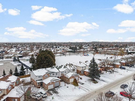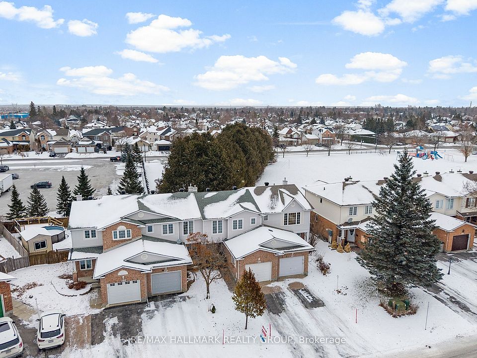Are you looking for a spacious townhome with no Rear Neighbours in the heart of Stittsville situated on a sought after family friendly street ? Look no further than this beautifully appointed 3 bedroom 2.5 bath home backing directly onto West Ridge Park . Private backyard with easy access to the park & green space . Close to all amenities , trails , great schools & parks . Harwood flooring & ceramic tile on the main level with a separate dining room & eat in kitchen . Updated kitchen features a breakfast bar , modern backsplash , granite countertops , stainless steel refrigerator & dishwasher & plenty of cabinetry for storage . Easy access to your fully fenced backyard - perfect for entertaining ! Bright, open concept living /dining room with a half wall in the entrance . Second level features a large primary bedroom with double doors , an updated 4 pc ensuite & generously sized walk in closet . Another full 4 pc bath & 2 large secondary bedrooms . This home is perfect for a growing family ! Bright lower level is fully finished & makes a perfect space for an office , gym , recreation or games room . Don't miss out on this turnkey home in this prime location . Some pictures have been virtually enhanced .