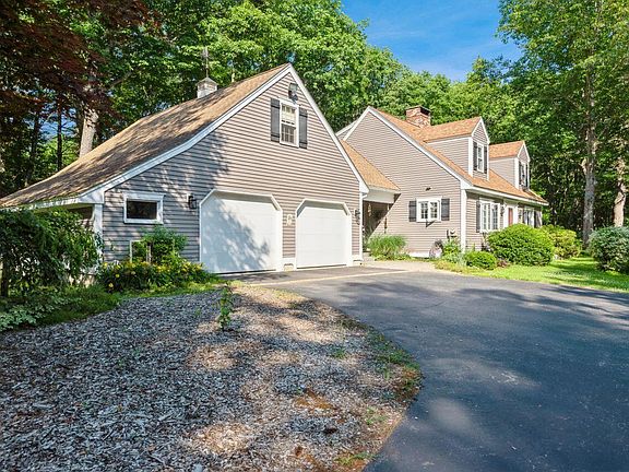This charming and accommodating cape style home is tucked away on 4+ acres surrounded by mature landscaping and nature. Modern features for the eco-minded buyer include a solar panel for bolstering hot water heating, heat pumps, an EV charging station and a brand-new high efficiency propane wall mounted boiler. A fantastic first-level primary suite is punctuated by its unique high-end custom bathroom that incorporates double vanities, clawfoot soaking tub, custom cabinetry, step-in tiled shower, radiant floor heating, and commodious walk-in closet. A private entrance with expansive windows opens to an outside deck, while luminous French doors lead to the main living spaces. At the front of the house is an inviting living room with maple flooring, wood burning stove and hearth, which flows into the modernized and accommodating kitchen with stainless appliances, granite counter tops and plenty of cabinet space. A dedicated dining room sits just off the kitchen overlooking natural scenery to the backyard and woods. The spacious study, half bath, mudroom, and laundry-pantry room complete the first level. The second floor offers lovely birch floors, a full bathroom and several additional bedrooms and flexible spaces. In addition to the double bay attached garage with second floor storage, this property includes an oversized barn with extra-large bay door, which could make wonderful accommodations for boat, RV or other storage needs. Or, it could become an indoor gym, or perhaps it has potential as accessory dwelling unit with renovations and town approvals. Only 6 miles to Parsons Beach, less than 3 miles into town, easy access to I-95, and a short drive to shopping, hospital, and amenities in Biddeford.