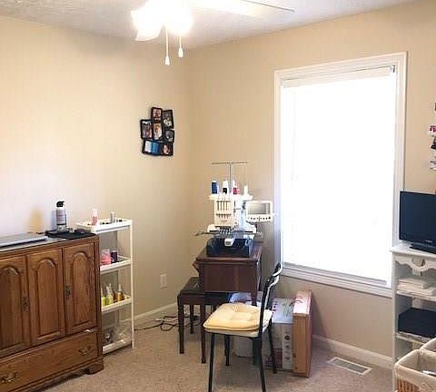 Open floor plan with island bar, 3BR, 2BA, split BR plan. Master walk-in closet, all appliances stay. New furnace. New living rm, master bedroom flooring. Deck and front porch, treed yard. Convenient to shopping, I-64. Seller found desired property. Immediate possession.