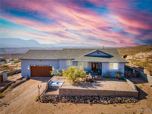 1637 SQUARE FOOT SITE BUILT CUSTOM HOME W/ATTACHED OVERSIZED 2 CAR GARAGE PERFECTLY SITUATED ON A .60 ACRE PROPERTY IN GORGEOUS MEADVIEW ARIZONA* MEADVIEW ARIZONA IS LOCATED ON THE ARIZONA SIDE OF LAKE MEAD AND THE WESTERN END OF THE GRAND CANYON NATIONAL PARK W/ACCESS TO LAKE MEAD* WITH ELEVATION AT APPROX 4000 YOU CAN ENJOY OUTDOOR ENTERTAINING YEAR-ROUND*Discover the fabulous, majestic views of the Grand Wash Cliffs and West Rim of the Grand Canyon* realize you're just minutes away from Lake Mead's South Cove and the winding Colorado River*3 BEDROOMS 2 BATHROOMS*This property is landscaped with decorative crushed rock, mature trees*HVAC*Front covered patio* decorative arched doorways*Enter into the living room and you will feel right at home* comfy wall to wall carpet* pellet stove*double doors to back patio*Casual dining area off the kitchen* Large kitchen with quality cabinetry *granite countertops *soft close drawers *breakfast bar,*view window over sink*refrigerator *gas stove* dishwasher* Great sized owners suite with cozy carpet *huge walk-in closet *additional 2nd closet *double door private exit to back patio* privacy bathroom with enormous vanity *custom tiled walk-in shower*2 spacious guest bedrooms *both featuring walk in closets *ceiling fans & full size guests bathroom with tub/shower combo* In-door laundry room w/built-in cabinets*Dryer stays with home* Spacious covered rear patio with ABSOLUTELY AMAZING MOUNTAIN VIEWS*Backyard landscaped with easy care rock* separate dog run area* plenty of extra space on this .60 acre lot* Block wall* Oversized 2 car garage with lane loft storage area and several storage closets* Just a short distance from downtown Meadview where you will find our local restaurants, bar, salons, Post Office & local business* 2 hours from Las Vegas*Meadview is on your way to Grand Canyon Skywalk*So bring your favorite outdoor riding toys to explore all the surrounding trails or visit Lake Mead for all your favorite water sports. As a member of our Property Owners Association, you can enjoy all the Amenities including access to the solar heated Pool, Putt-Putt Golf Course, shuffleboard, Pool Tables, Ping Pong, and Tennis/Pickleball Courts*