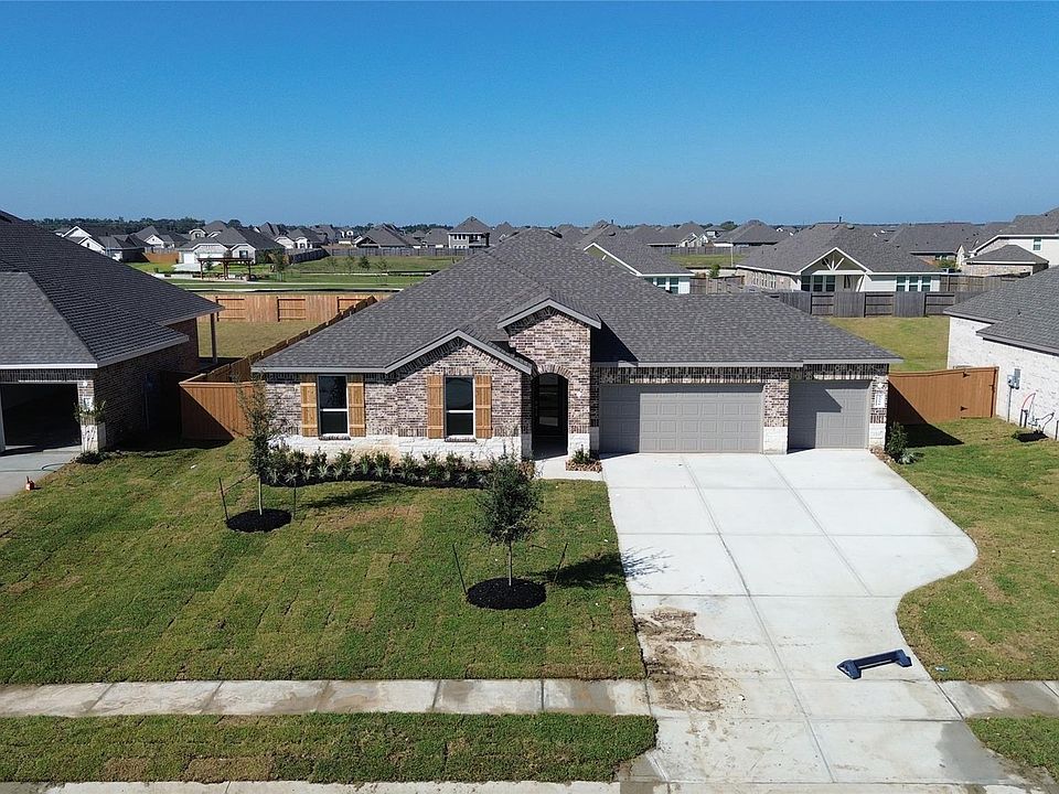 UNBELIEVABLE NEW D.R. HORTON BUILT 1 STORY 4 BEDROOM IN RIVER RANCH ESTATES! 3 CAR GARAGE! Modern Finishes Throughout - PLUS Versatile Layout with 4 Bedrooms, 3 Full Baths, & Home Office/Study! Chef's Dream Kitchen Boasts 11' Island, 42" Shaker Cabinetry, Quartz Countertops with Seamless Backsplash, & 5 Burner Gas Cooktop! 7" Vinyl Plank Wood-Look Flooring, Upgraded Tile Surrounds in Baths, Frameless Shower Surround in Primary Bath, Smart Home System, Deako Smart Switches, 8' Interior Doors & 5" Baseboards, Sprinkler System, Full Sod, Garage Door Openers, Tankless Water Heater, LED Lighting, & HUGE Covered Patio Included! Popular Split Plan Design + Wonderful Open Concept Layout! Great New Community Playground, Rec Center, & Four Acre Community Lagoon, Easy Access to the Grand Parkway, and to the Booming City of Dayton! READY FOR MOVE-IN!