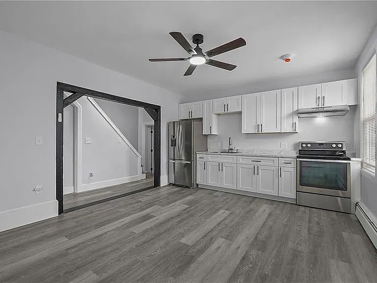Large 4 bedroom apartment with a bonus(office/play/storage) room, living room and kitchen. This apartment was freshly remodeled from top to bottom with new appliances. Lots of closet and storage pace. This unit is extremely clean as it has not been lived in before. We have a zero pet policy. Washer and dryer are in the basement. The bedrooms are located on the second floor while the kitchen, bath, bonus and living room are on the first floor making it a private and comfortable layout with plenty of space. Available mid April. 1 year lease, owner pays water, trash. Utilities are separate.