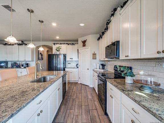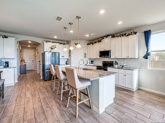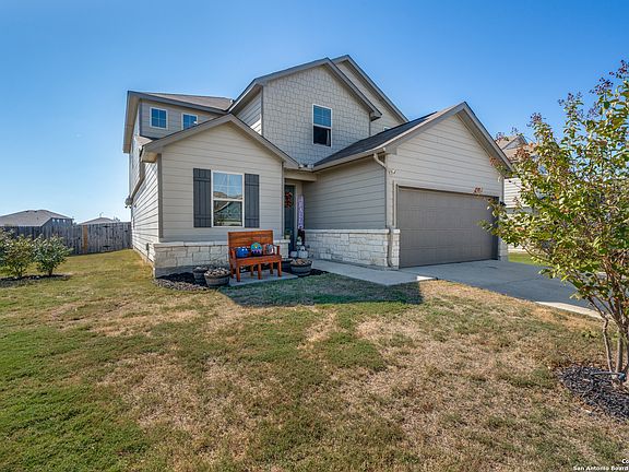 Welcome home to this modern and inviting 2-story residence featuring 4 spacious bedrooms, 3.5 baths, and a dedicated office/study, perfectly situated just off Highway 46 in a rapidly growing corridor between New Braunfels and Seguin. Designed for both style and functionality, the open-concept layout is filled with natural light and centers around a sleek contemporary kitchen offering a large island, stainless appliances, and a built-in beverage bar-ideal for everyday living and entertaining. The primary suite provides a relaxing retreat, while additional bedrooms and living spaces offer flexibility for family, guests, or hobbies. Step outside to a fenced backyard with plenty of room to unwind, play, or host gatherings. Just minutes from the Stars & Stripes Drive-In Theater, dining, shopping, and hospital-and with quick access to both I-35 and I-10-this home is perfectly positioned for an easy drive to San Antonio or Austin. A blend of modern design, comfort, and convenience in a community that continues to thrive.