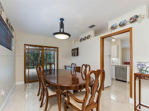 Beloved 3 bedroom/ 2 bath home located on a corner lot in North Palmetto Bay. Formal living and dining rooms with marble flooring. Kitchen opens to family room with view of the pool. Laminate flooring in bedrooms. Primary suite has large walk-in closet. Fenced backyard, screened pool with covered patio, utility closet. Side entry 2 car garage. Full house generator. Excellent location close to A+ schools, parks and the Falls for grocery stores and shopping.