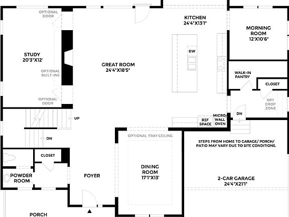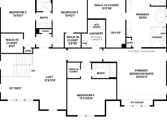Deluxe family appointments. The Renwick's impressive covered porch and entry open onto the spacious foyer and beautiful formal dining room, revealing views of the expansive great room with desirable rear yard access. The well-equipped gourmet kitchen overlooks a bright casual dining area and morning room, and is highlighted by a large center island with breakfast bar, plenty of counter and cabinet space, and huge walk-in pantry. The palatial primary bedroom suite is enhanced by a majestic walk-in closet and deluxe primary bath with dual vanities, large soaking tub, luxe glass-enclosed shower with seat, linen storage, and private water closet. Central to an enormous loft, ample secondary bedrooms feature sizable walk-in closets, two with Jack-and-Jill bath with separate dual-sink vanity area, one with private full bath. Additional highlights include a generous office off the great room, convenient powder room with private water closet, centrally located laundry, and additional storage.