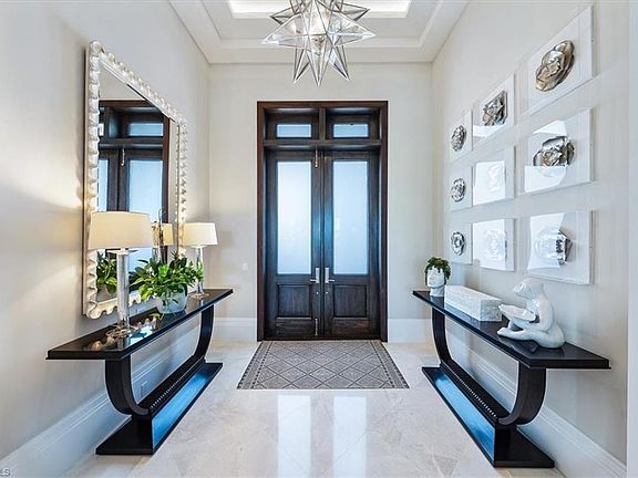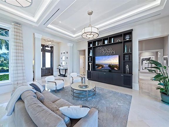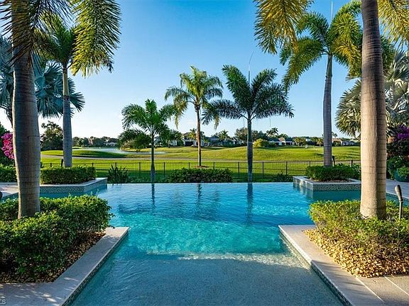 GOLF MEMBERSHIP AVAILABLE IMMEDIATELY! An impeccable balance of indoor/outdoor living is immediately evident as you cross the threshold of this stunning Diamond-built home. A contemporary palate of crisp whites, chromes and chocolate tones blends harmoniously with the sweeping views of the golf course and water for a perfect FL lifestyle made accessible from a full wall of doors leading to the spacious lanai. Nothing but the finest detailing is apparent throughout including custom built-ins coffered ceilings, gleaming marble flooring plus new state-of-the art AV system, home automation and wine storage. The lanai offers generous covered seating areas, outdoor fireplace, fully equipped kitchen, custom infinity edge pool, serene spa & views! The heart of the home is the spacious gourmet kitchen with walk-in pantry plus appliances and details any cook would covet - all opening directly to the family room and lanai. The master features dual custom walk-in closets, custom shoe closet plus his & hers bathrooms. The guest bedrooms are perfectly placed for privacy too. Set on almost an acre of land, this home also features a 4-car garage & whole home generator to complete the checklist.