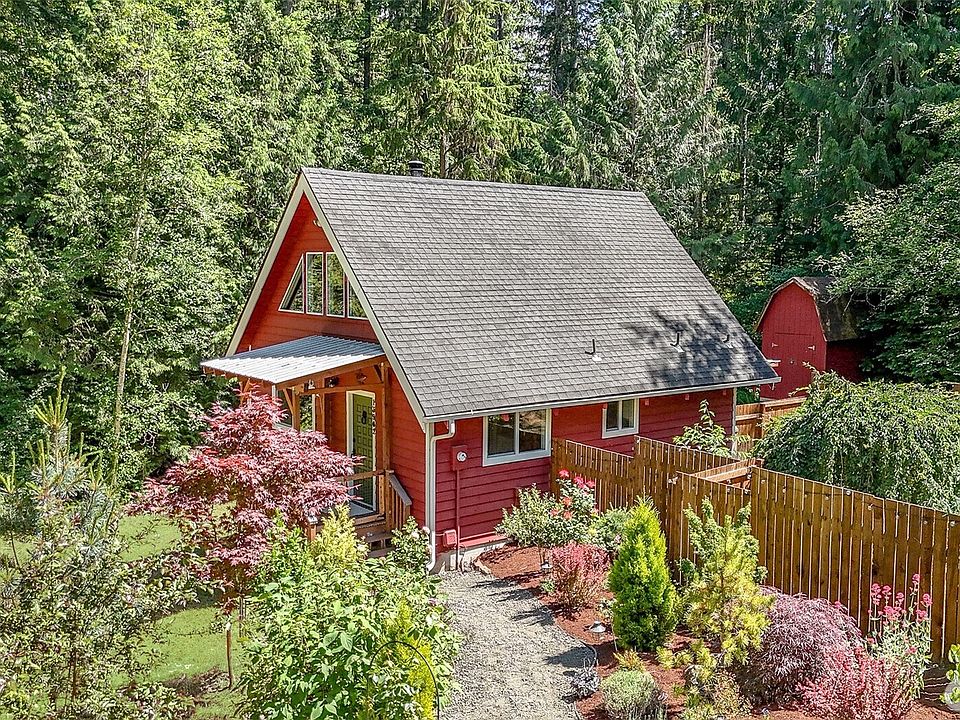 Charming Country Cottage at the End of a Quiet Cul-de-Sac! Welcome to this peaceful retreat surrounded by trees, offering privacy and serenity. This light and bright 2-bedroom, 1-bathroom home features brand new LVP flooring, fresh interior paint, new carpet, a woodstove and updated light fixtures throughout. The open floor plan includes a cozy loft and stunning shiplap ceilings with exposed beams, adding warmth and character. A fully fenced area makes it ideal for animals, and there’s also a large storage shed for all your tools or hobbies. Whether you’re looking for a quiet escape, a starter home, or a great investment, this charming cottage checks all the boxes don’t miss out on this fantastic deal!