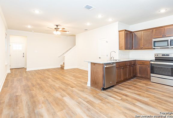 Gleaming Duplex in a gated community and conveniently located! Close proximity to NISD schools, Culebra Rd. shopping and just minutes away from major highways! The two-story, and spacious floor-plan features all bedrooms and laundry room upstairs so it provides plenty of room for enjoying and entertaining downstairs in the peninsula kitchen with granite countertops and all new appliances! Don't miss out on renting this property for the very first time ever! *Pets are negotiable, pet screening during app process.