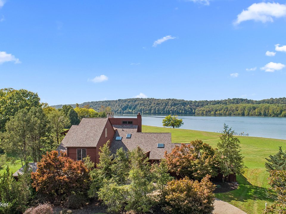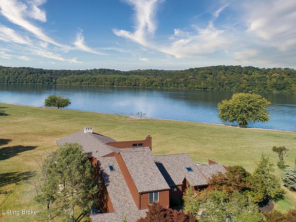 PARADISE FOUND! Welcome to this truly extraordinary house. It's like owning your own country club, entertainment mecca, and golf course. Did I forget to mention that there's an unbelievable view of the Ohio River? You can also enjoy your own swimming pool, theater room, spa room with sauna and hot tub, plus a 2nd floor golf simulator room, where you can play virtually any course in the world. The first floor also includes 2 bedrooms, 2 full baths, mud room, laundry, wet bar, game room with fireplace, dining area with fireplace, and a massive great room and kitchen with fireplace that opens to the pool deck as well as a stone and wood porch with an outdoor fireplace overlooking the river. The view will knock your socks off! Upstairs, enjoy the huge principal bedroom with fireplace and porch overlooking the river, an ensuite bathroom, plus two large closets. Another large bedroom suite has a full bath and balcony. Next to the golf simulator room is a recreational room with a loft. The lower level features a large, walkout basement. The first level contains a 3-car garage with access to the mud room. The property includes a new roof, new copper gutters and downspouts, new exterior stain and new skylights. The only thing missing is the lucky new owner. The property has never before been offered for sale. Boat owners should inquire at the Cardinal Harbour Marina for a key fob that allows a boat to be launched from the ramp.