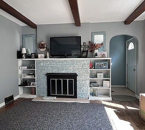 Walk-out basementFireplace with built-in bookshelvesLarge windowsLarge eat-in kitchenNew windows