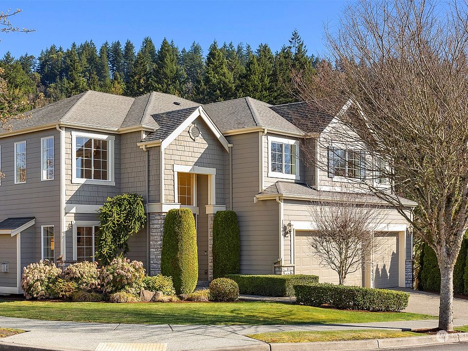High caliber home in idyllic suburban locale. Spacious, award-winning lightly-lived-in Bennett Home with soaring ceilings and flowing floor plan on private corner in Ridgewood at Newcastle. Custom details abound from formal cathedral foyer and grand staircase to coffered ceilings, Brazilian cherry flooring and wainscoting. Offers main floor home office, large primary with walk-in closet and luxurious 5-piece bath, three additional bedrooms and expansive bonus room for work or play. Enjoy the convenience and security of a master-planned community steps from parks and Newcastle Elementary in top-ranked Issaquah School District. Minutes from Cougar Mountain Trails, Coal Creek Village restaurants and shopping. Easy access to I-90, 1-5.