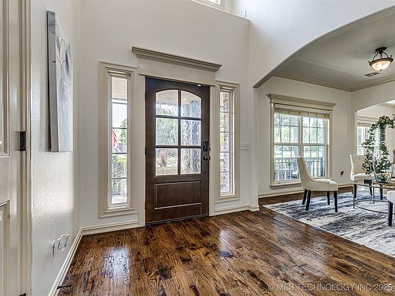 Tucked away in a cul de sac this .45 ACRE home is close to everything Owasso and conveniently located to schools. Freshly painted interior 4/3.5/3. Primary suite is downstairs with a fabulous oversized shower and massive walk in closet. Enjoy the large covered patio for outdoor entertaining! Chef kitchen with commercial stove and exotic granite! Beautiful hand scraped hard wood floors! Theatre Room with custom surround sound! Side entry three-car garage. NO HOA!
