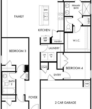 Open, single-story home with expansive breakfast bar. Private primary suite features a large walk-in closet. Linen cabinets with smoky grey granite countertops, grey limestone-look tile flooring and textured carpet in our Cool package.