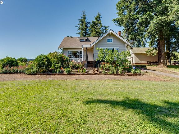 Escape to a hidden gem in Oregon's wine country, where panoramic views of the Chehalem and Willamette Valleys meet lush vineyards across three renowned AVAs: Willamette Valley, Chehalem Mountains, and Laurelwood District. This 5-acre property, comprising two tax lots, features 1.8 acres of Pinot Noir vines, a 1+ acre pasture, culinary and floral gardens, and a hobby farm. Resource Industrial zoning offers endless possibilities—create a winery, tasting room, business, or private retreat..The property includes a charming farmhouse with a main-level primary bedroom, a 1,000 sq ft unfinished basement, a 30' x 60' barn with concrete floors, and a detached two-story garage. Enjoy 360-degree views, RV parking with power, and a private driveway. Minutes from Newberg, Sherwood, and Highway 99W, it's close to top wineries and dining. Add solar for off-grid living and own a piece of Oregon's wine country legacy in a prime location.