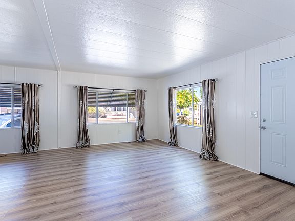 Cute 2-bed/2-bath mobile with views of mountains and a creek in the fantastic Clear Creek Mobile Estates! Light and airy, freshly painted, with new laminate floors in the living room, dining area, and bedrooms. The HVAC, hot water heater, dishwasher, and fridge were all installed in 2021. Brand new garbage disposal in kitchen. Enjoy easy living with a no-maintenance yard. Watch the deer and other wildlife wander through the park. And if you open your bedroom window, you'll even be able to hear the sound of running water in the nearby creek. Best of all, you'll be very close to all that Whiskeytown National Recreation Area offers and fantastic hunting spots. Make this your primary home or your getaway mountain retreat!