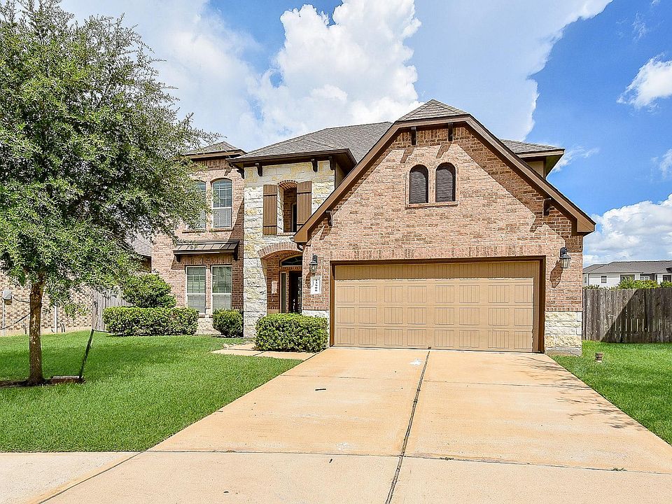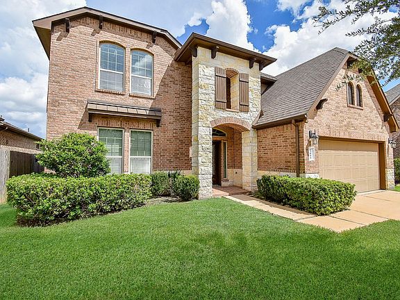 Stunning lakeview property featuring a gourmet kitchen with granite countertops, tile backsplash, stainless steel appliances, double ovens, and a wrap-around breakfast bar. The spacious living room boasts a fireplace and a 2-story wall of windows offering a view of the covered rear patio. The primary bedroom is located on the main floor with a bay window and an en-suite bath boast a garden tub and glass shower. Upstairs you'll find a game room, guest bedrooms with full bath. This home includes wood and tile flooring, a formal dining room, and and 2" blinds throughout. Upgraded Brick and Stone elevation! Top-rated schools in Fort Bend ISD. Minutes away from many elite golf courses!
