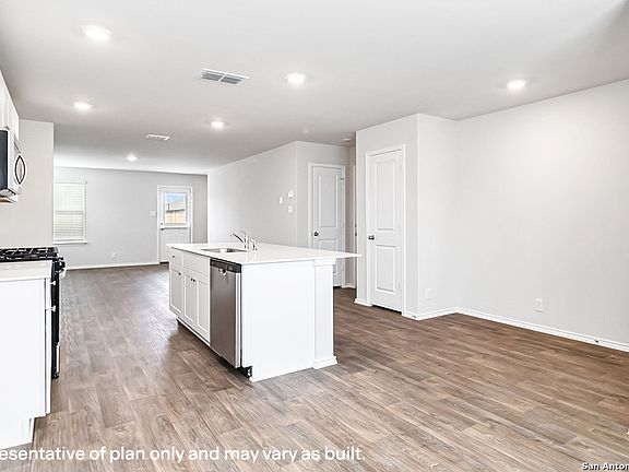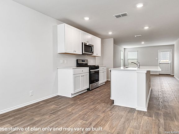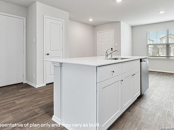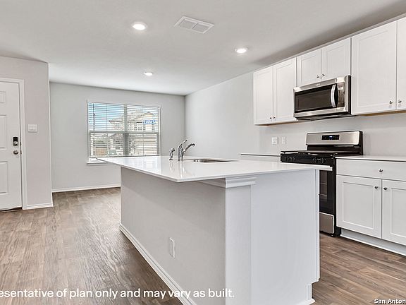 The Commerce is a two-story floor plan offered at Riverstone at Westpointe in San Antonio, TX. Designed to provide you with comfortable living, this home features 2 classic front exteriors, a 1-car garage, 5 bedrooms and 3 bathrooms spaced across 2009 square feet. As you step inside The Commerce, you will notice an open-concept dining area, kitchen and living space that blend seamlessly together so that you never miss a moment. Your spacious kitchen offers stainless steel appliances, desirable shaker style cabinetry and quartz countertops, perfect for any aspiring chef. There is a storage closet located under the stairs and a secondary bedroom and full bathroom just off the living area, ideal for guests. Your main bedroom is located on the second floor and features an attractive ensuite bathroom with plenty of counter space, shaker style cabinets, a combined bathtub and shower and a large walk-in closet. A third full bathroom, a utility room and all remaining bedrooms are located on the second floor. All secondary bedrooms offer quality carpeted floors and a walk-in closet. These rooms are versatile. Use them as bedrooms, offices, work out rooms or other bonus spaces. The Commerce floor plan also includes sheet vinyl flooring at entry, kitchen, hallways, living areas, wet areas, full yard landscaping and irrigation and our HOME IS CONNECTED base package. Using one central hub that talks to all the devices in your home, you can control the lights, thermostat and locks, all from your cellular device.
