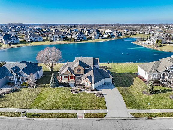 OPEN HOUSE – SUNDAY, FEB. 11TH – 2-4PM. This pristine, custom-built Bob Buescher home has an oversized covered front porch leading to the large foyer inside. The main level open floor plan has breathtaking pond views from the 2-story great room windows & oversized windows in the breakfast nook. The formal dining room is flanked by pillars and boasts of 2 top-lit inlays. The kitchen has custom cabinetry, a large/angled kitchen island with quartz countertops, 1-year old dishwasher, an induction stove (2021), newer refrigerator (2019) & walk-in pantry. Just beyond, enjoy the remote-controlled gas log fireplace and again, those spectacular pond views from indoors or from the outdoor maintenance-free Trex® deck. The main level primary bedroom suite also shares water views from the oversized bay windows. A ½ bath, laundry room with shelving & utility sink and 2 large storage closets complete the main living level. Upstairs, bedroom 2 has its own full bath, while bedrooms 3 & 4 share a Jack ‘n Jill bath. Over 1200+ feet of the lower daylight level has been finished to include a family room with shelved storage closet, large “L” shaped quartz wet bar w/full refrigerator, microwave & dishwasher, and large area for a gaming table. A home office and full bath #4 with built-in linen closet are also on this level PLUS over 500+ unfinished sq/ft (previously used as a workshop) has endless future potential. Multiple shelved closets in this home provide an enormous amount of clutter-free storage. The 947 sq/ft garage has angled doors, creating a large triangular area for storage. Recent updates include a new AC system in 2018, hot water heater in 2020, exterior paint in spring 2023 along with new carpet on the main level (also 2023). This move-in ready home feeds into the SW Allen County school system, is conveniently close to all SW Ft Wayne amenities & shopping, and just minutes away from I-69 access, the Jorgensen Family YMCA & Lutheran Hospital. This spectacular 1-owner home has been well-cared for and is ready for its new owners to love!