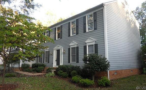 Classic Colonial in private cul-de-sac! Elegant two-story foyer; beautifully proportioned rooms for comfortable everyday living & entertaining. Enjoy the expansive living room & dining room, convenient first floor study, super-spacious great room with gas fireplace & gourmet chef's kitchen, complete with gorgeous granite & backsplash, large cooking & serving island, ceramic tile flooring, new stainless appliances, pretty mocha cabinets, trey ceiling & three pantries! Find plenty of storage space in the separate laundry room & in the oversized two-car garage. The second floor offers four large bedrooms with ample storage & two baths; the master bedroom has its own large walk-in closet & luxury bath with dual vanity, soaking tub & separate shower. The screened-in porch, freshly painted deck & back yard are great bonuses to enjoy! The deck is ground-level with just one step; very safe for younger children & anyone challenged by too many steps. Convenient to premier dining, shopping, entertainment, several area hospitals, Ft. Lee & major roadways, including 76 & 288. Excellent Chesterfield County Public Schools; ask about the Center Based Gifted Program!