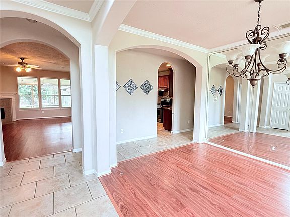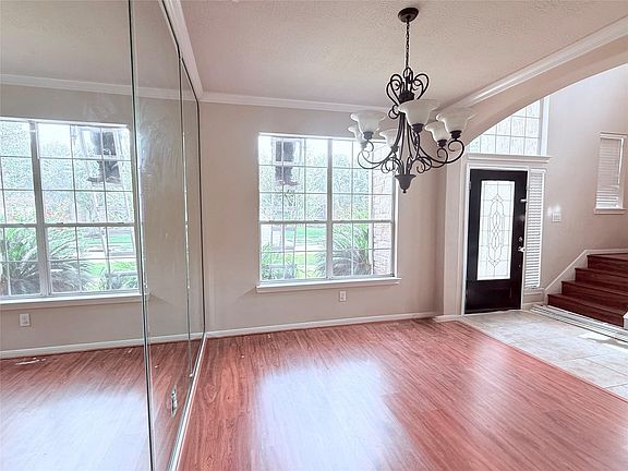 Welcome to this Beautiful and well-maintained property in the heart of Sugarland! This home has an inviting manicured front yard with lots of mature trees and greenery around the neighborhood, a delight for nature lovers!. Don't want carpets? We got you! We have easy-to-clean and appealing chestnut laminate all around the house. No hassle of ugly stains. 4 spacious bedrooms with a Primary downstairs with an en-suite bath. Master Chef kitchen with all necessary SS appliances and lots of cabinets for pot storage. Granite countertop with a breakfast Island and a pantry. Separate dining area with easy access to the kitchen. Well-lit living area overlooking the lush backyard with mature fruit trees. Huge covered patio, so entertaining is fun. If you are looking to be a resident of this great Community in Sugar Land come check this home and make it yours.
