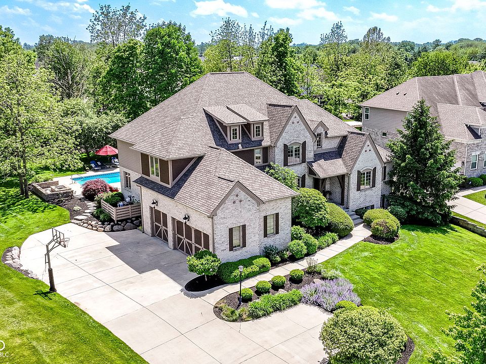 Stunning Custom home with super newer large in-ground heated pool just a short walk to your boat dock! Primary Bedroom on main floor with large custom closet. 2 story great room with plenty of natural light! Recently finished hardwoods on main floor & new wood stairs. 2 wonderful laundry rooms on main floor & one on 2nd floor. Kitchen flows into a cozy hearth room with door to patio with gas-line for grill & POOL. Basement boasts: Theatre, Bar, Bedroom, Rec/Billiard Room, WineCellar/Exercise Room, Family Room. Rich Main floor OFFICE with coffered ceiling, builtins & fireplace. 4 bedrooms upstairs with a unique little room off one of the bedrooms for play/drums/crafts/homework ~ you choose. This home is conveniently located close to shopping, schools, dining, Geist, golf, trails...etc!!!
