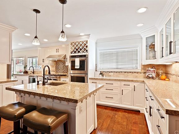 WOW! WOW!This home is exceptional! The craftsmanship is TOP NOTCH! The beautiful & open floor plan w/wood flooring (engineered) & custom trim & woodwork details are spectacular. The dream kitchen includes a center island w/granite counters, commercial grade sink, bar top seating, custom pendant lighting & more! The appliances are Kitchen Aid 1919 Professional Series (stainless steel), there is a coffee bar & the kitchen features a SECOND full sink (commercial grade) w/ garb. disposal. The cabinets are all new, custom & feature Blum self closing hinges.There are custom cookie sheet dividers, custom utensil partitions & custom Mission style cabinets...everything is custom. The family room offers a built in entertainment center (custom) w/lighting, the living/dining room features a brick fireplace, the windows have all been replaced with TOP of the line windows, every light is LED, the bathrooms are remodeled & upgraded & there is a laundry room & wet bar! The garage has a wood shop w/25+ outlets, its own ac unit & a dust collection system. The backyard is a true oasis complete w/a custom gabled patio cover w/ ceiling fan & light, new sod, custom landscaping & a jacuzzi w/its own custom patio cover! Located on a quiet, cul-de-sac street w/easy access to restaurants & entertainment. Walking distance to Fullerton's Laguna Lake & the hiking, biking & horseback riding offered on the Fullerton Loop trails. This home has it all!