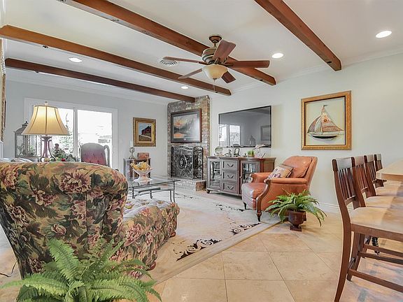 I wish it wasn't winter because this yard is simply gorgeous in the Spring, and you can sit on the huge patio and just enjoy the blooming roses and trees. Enter the home through double glass entry doors and the first thought is wow, what beautiful travertine marble tile floors - not only easy care, but absolutely lovely. The Plantation shutters are all one would need for window coverings. Paved RV parking, mow strips for easy care landscaping, and huge patio spaces.