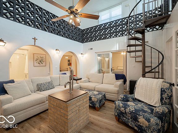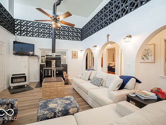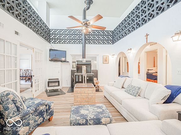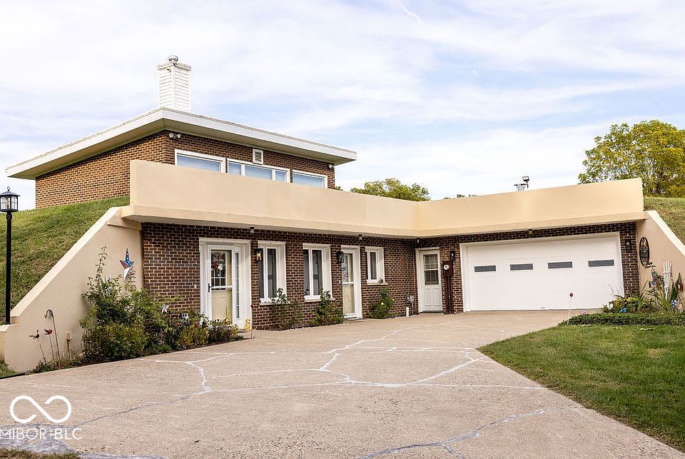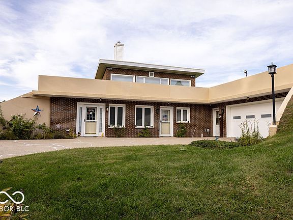 Wow! This meticulously maintained 4-bed, 2.5-bath home sits atop a hill, tucked away at the end of a long private lane, offering panoramic views and a serene setting. The 3,200 sq. ft. home is built with 8.5-inch reinforced concrete walls for strength and energy efficiency-perfect for those seeking off-grid living potential. Inside, you'll find an updated eat-in kitchen featuring Amish-built cabinetry, quartz countertops, and stainless steel appliances. The bright atrium floods the family room with natural light, while a second living area with a wood-burning fireplace adds cozy charm. New flooring flows through much of the home. The spacious primary suite includes a renovated en suite bath and sliding glass doors overlooking the atrium. A dedicated office area and three additional bedrooms complete the main living space. An attached 820 sq. ft. 2.5-car garage includes a workshop, and above it is a private in-law apartment with 2 bedrooms, a full bath, and an open-concept living/kitchen area-ideal for guests or rental income. This property is set up for sustainable living with two wells and a centralized Amish wood-burning cook stove. Outdoors, enjoy mature trees, 13 fruit trees, and a thriving grape and berry corner. A renovated 4-bay detached garage includes new doors, roof, wiring, and windows, and can accommodate a full-size RV. Animal lovers will appreciate 4 acres of newly fenced pasture, a spring-fed creek, and a small barn-ideal for horses or livestock. Located just 5 minutes from Covington's trail system, 30 minutes to Turkey Run & Shades State Parks, and within an hour of Purdue, Indiana State, and the University of Illinois. Only 2.5 hours to downtown Chicago!