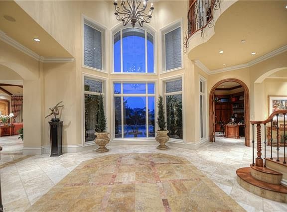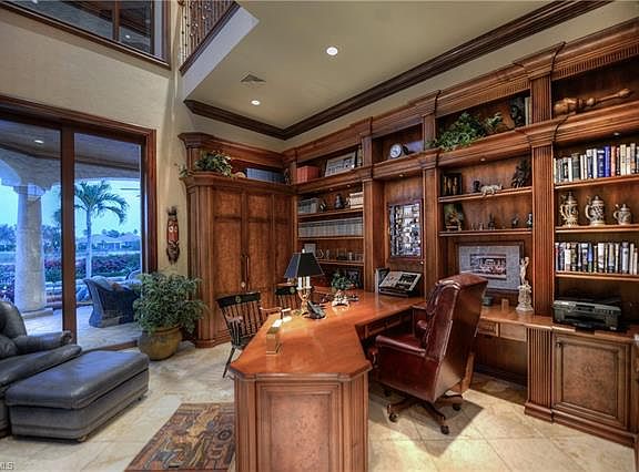This beautiful custom estate built by McGarvey Homes, offers dramatic lake and golf course views and emphasizes luxury living at its finest. Situated on almost a acre of land, this property measures over 7,362 square feet of living space and over 11,400 square feet total. Complete with 4 bedrooms, 2 offices 4 full baths & 2 half bathrooms, there are upgrades throughout including a gourmet chef's kitchen with Wolf & Sub Zero appliances with a wet bar and wine room. Other notables include a wood paneled office with wood floors, marble flooring, three en-suite guest rooms, spacious family room, a 4-car garage, ceiling details, a oversized master suite with a sitting area and with his/her closets, a game room with a Pub style bar, and much more. Utility upgrades include a private elevator, 4 new AC units, new pool equipment, impact windows and doors, electric screens and shutters, a generator, 2 propane tanks totaling 1500 gallons, mechanical room & copper downspouts. Step out any of the numerous sets of pocket sliders to the lanai which features expansive space, a outdoor kitchen, a large pool and spa with a water feature, swim up pool bar, fireplace, a pool bath and lush landscaping.
