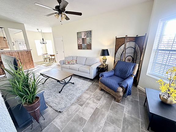 Impressive fully-furnished and fully-equipped 2 room, 1 bath Townhouse located near the foothills and a large park! Many recent updates include tile flooring throughout, new cabinets, and new countertops in kitchen and bathrooms. Kitchen has stainless appliances and is complemented by the sunny breakfast nook which opens to the living area.