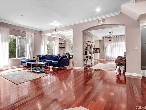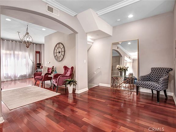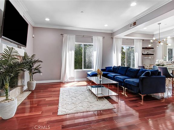 Welcome to this 12-unit townhome complex built in 2005. This unit is located in the back of the complex away from foot traffic and street noise and there are no units above or below. There is direct access to a grassy area for entertaining, kids and pets. This spacious unit is filled with natural light and is bright and airy. There are views of trees and greenery from the family room, kitchen and bedrooms. An open concept living room/dining room has a fireplace that can be enjoyed by both rooms. The upgraded modern kitchen features granite counter tops, stainless steel oven, microwave, new dishwasher and refrigerator. This home has beautiful architectural features throughout, stunning Brazilian cherry hardwood floors, high ceilings, recessed lighting, and lots of built in cabinets and storage. The powder room has been recently remodeled. The Master ensuite has a double door entry, walk-in closet and high vaulted ceilings. The master bath has a soaking tub and separate stall shower. The downstairs bonus room is currently used as an office. You will love having your own private 2 car side-by-side garage with adjacent guest parking and gated access. The benefit of this new construction is that this unit stays cools in the summer and comfortable in the winter which will be reflected in lower utility costs. The HOA takes care of earthquake insurance, landscaping and outdoor cleaning. This home checks all the boxes. great location, privacy, newer construction with high ceilings, laundry inside unit, office space, attached two car private garage, guest parking and security gated common area. The views of the tree lined grassy area throughout the home plus the entertaining area in the yard and BBQ make this the perfect place to call home.