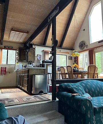 Inside, the home features soaring ceilings and large windows that fill the space with natural light. The cabin is fully furnished and located on a quiet street just minutes from downtown Truckee. It's also a great spot for winter sports, with the Tahoe Donner ski hill and resorts like Northstar and Palisades all within a 25-minute drive.