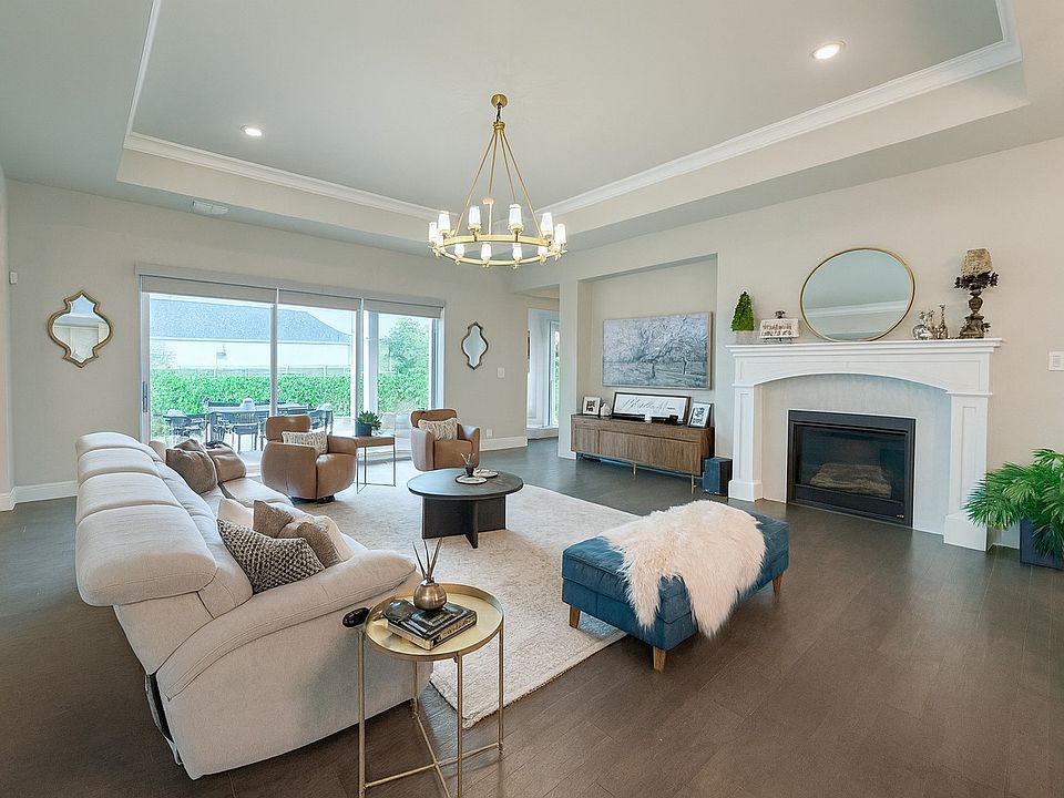 Cozy fireplaceModern luxuryBuilt-in pocket officeFormal dining roomScenic corner lotSleek bar areaOversized island