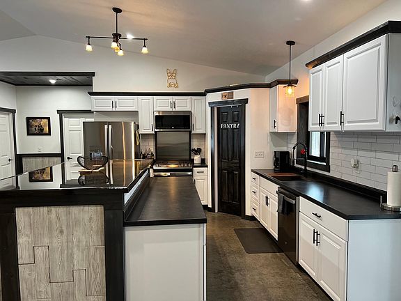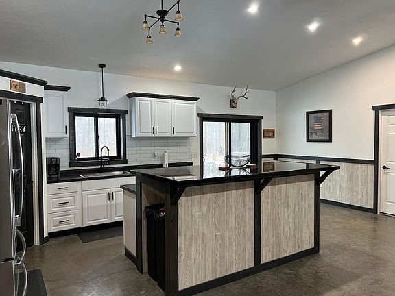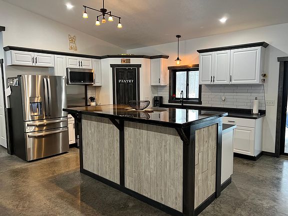 Situated on nearly 10 acres close to town and shopping, this stunning one-level living home offers an inviting atmosphere! Enjoy the efficiency of in-floor heating and spray-foamed walls throughout the home and garage. Relax on your covered patio while appreciating the wildlife, which provides amazing privacy and great hunting opportunities. The open floor plan features 9-foot walls and vaulted ceilings, creating a spacious feel. The kitchen boasts a walk-in pantry, a large epoxy center island, a tile backsplash, and a gas cooktop. The master suite includes an oversized walk-in closet, a large tile shower, and a vanity. Additionally, there is a huge 26x40 heated garage with floor drain. From garage walk into a generous mudroom/laundry room, complete with a built-in sink. This is the private home on acreage you have been searching for!