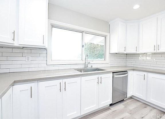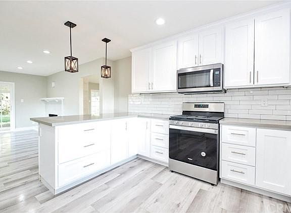 Beautifully remodeled single story Whittier gem. Front double door entry. This 3 Bedroom 2 bath home is ready to move in. New interior and exterior paint, open and large living room with new flooring, and gorgeous, tiled double sided fireplace . The kitchen features new white shaker cabinets, quartz counter tops, white subway tile backslash and new pendent light fixtures. The bathrooms are updated with new tile, vanities and fixtures. The bedrooms feature ample closet space and new carpet. Inside laundry. Long paver driveway with 2 car detached garage. Landscaped front and back with covered backyard in rear. Truly a lovely neighborhood.