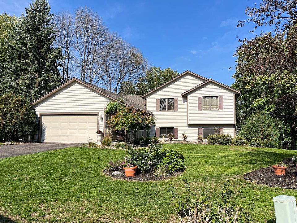 Welcome home to this amazing property that has been enjoyed by the sellers for over 27 years. This peaceful setting located on a cul de sac with trees to enjoy while relaxing on your large maintenance free deck, leading out to a pond that can offer enjoyment year round. This 4 bedroom home with a private master bath and three beds on one level offers plenty of room for all to enjoy. The open concept on the main floor with beautiful hardwood floors, updated kitchen with granite countertops, center island a "chefs" dream, even mac and cheese will taste better prepared in this kitchen. Cuddle up to a good book while enjoying the fireplace in the family room. This home located near parks, bike and walking paths as well as an easy commute to shopping, restaurants and the Cities. All while enjoying the quiet neighborhood set back for the hussle and bussle. Put this home on your "must see" list, you will be glad you did. Quick close is possible.
