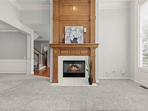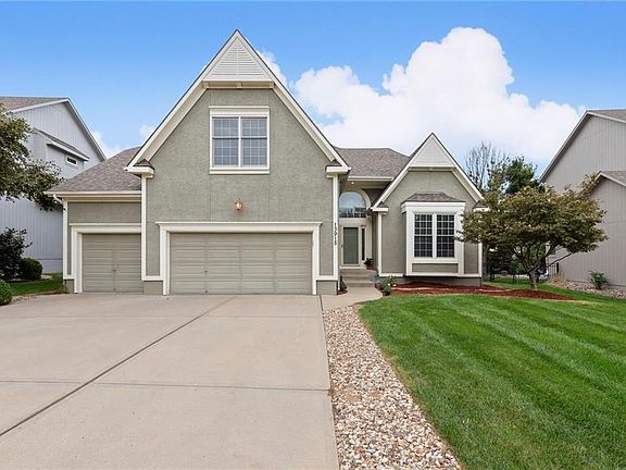 What are you waiting for? Finally you can grab a home with a main floor primary suite in the desirable Amesbury community! Step inside to a dramatic two-story entry and a spacious Great Room with floor-to-ceiling windows that fill the space with natural light. The warm Kitchen and Hearth Room feature beautiful wood flooring, updated granite counters, and a true cook's delight--an oversized prep island with no sink plus upgraded venting to the outside. A new refrigerator stays with the home, and the oversized corner pantry keeps appliances and groceries neatly tucked away. The main floor also offers a convenient laundry room with new tile flooring. You will enjoy the main floor primary suite with huge walk-in closet and a fully updated bath--expanded shower, new tile, and modern fixtures. Plush newer carpet extends throughout the main and lower levels of the home, creating a soft, inviting feel. Upstairs, you'll find a versatile loft overlooking the entry and Great Room, along with three generously sized bedrooms, each with walk-in closets and bath access featuring fresh tile flooring. The finished lower level is an entertainer's dream--complete with a large TV area, kitchen/bar, full bath, exercise area, play area, craft space with utility sink, and an versatile walk-in closet designed for clothing and storage. Enjoy outdoor living on the newer composite deck overlooking the east-facing, fenced backyard with a raised bed for your garden, too! The three-car garage with utility sink adds extra convenience. Nestled on a quiet cul-de-sac in award-winning Blue Valley Schools, this home truly has it all. Just a two block walk to the paved 1/2 mile pathway to Amesbury Lake Park. This trail connects with the Tomahawk Trail system--12 miles of fun!