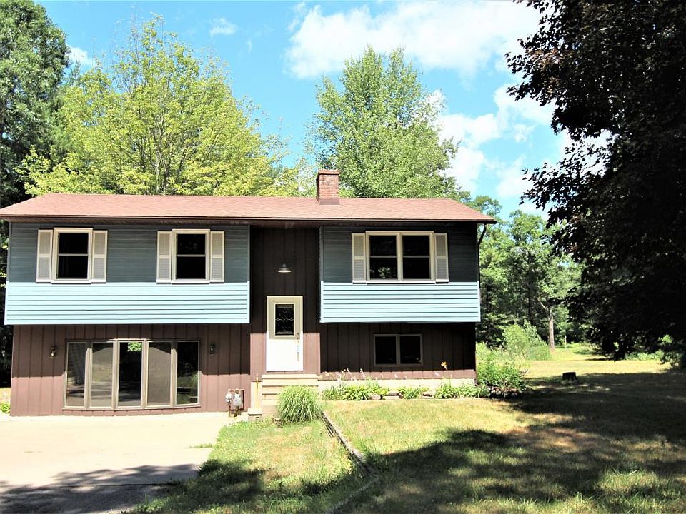 Enjoy your own private retreat! This home sits on 7 beautifully wooded acres with ORV/walking trails and a pond. This home offers 4 bedrooms and 2 full baths in Fruitport schools. The main floor features 3 bedrooms and a large living room with a wood burning fireplace. The kitchen hosts a pantry and snack bar. The dining area opens to the living room. Main floor has been refreshed with new paint, windows, carpet, wood trim and solid wood doors. Convenient main floor laundry. The walkout lowerlevel features an extra large family room with a picture window and newly renovated second bathroom. Spacious fourth bedroom on the lower level boasts another fireplace. Enjoy the wooded surroundings from the large deck and the patio down below. Plenty of room for cars and a workshop in the 3 stall detached garage / pole barn. You'll also have ample storage in the easily accessible garage attic. The house roof is newer and has a lifetime warranty that will be transferred to the new owner.