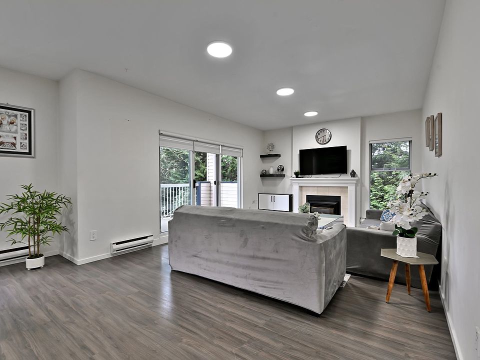 UPPER FLOOR CORNER UNIT! Centrally located in the heart of Newton. Welcome to Tudor Park. Rarely available FULLY RENOVATED 2 bed/2 full bath, 1205 sq.ft open floorplan w/huge private covered patio. It has spacious & bright living area, large bedrooms, separate dining room, insuite laundry & quality finishings throughout, large primary bedroom boasts an ensuite bathroom, walk-in closet & large windows throughout the home allow for an abundance of natural light, creating a warm & inviting atmosphere(gas fireplace, hot water included in strata fee).Amenities; outdoor swimming pool, tennis courts, hot tub, gym, clubhouse/party room & guest suite. Conveniently located within walking distance to grocery stores, shops and Newton Exchange. This one won't last long!!
