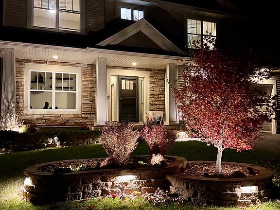 Beautifully updated home with a smart design and layout! Stunning curb appeal with a NEW stone front, professional landscape design, and custom lighting that’s a must-see at twilight. The inviting covered front porch welcomes you inside, where brand-new carpet and fresh interior paint throughout create a clean, new feel. The main level offers a welcoming front office and an open-concept great room with a cozy gas fireplace and dining area that flows into the bright kitchen with soft-close cabinets, Silestone quartz countertops, stainless steel appliances, subway tile backsplash, an island with pendants, and a corner pantry. Off the kitchen, the mudroom includes a walk-in closet and access to the 3-car garage. Upstairs, four bedrooms plus laundry with a new washer and dryer make daily living effortless. The spacious owner’s suite offers a spa-like bath. The finished walkout lower level adds a bright family room, fifth bedroom, and adjacent bath. Additional updates include quiet DC motor ceiling fans with remotes, rocker and timer switches, USB and USB-C outlets in the primary suite, bath fan timers, and dimmable lighting throughout.