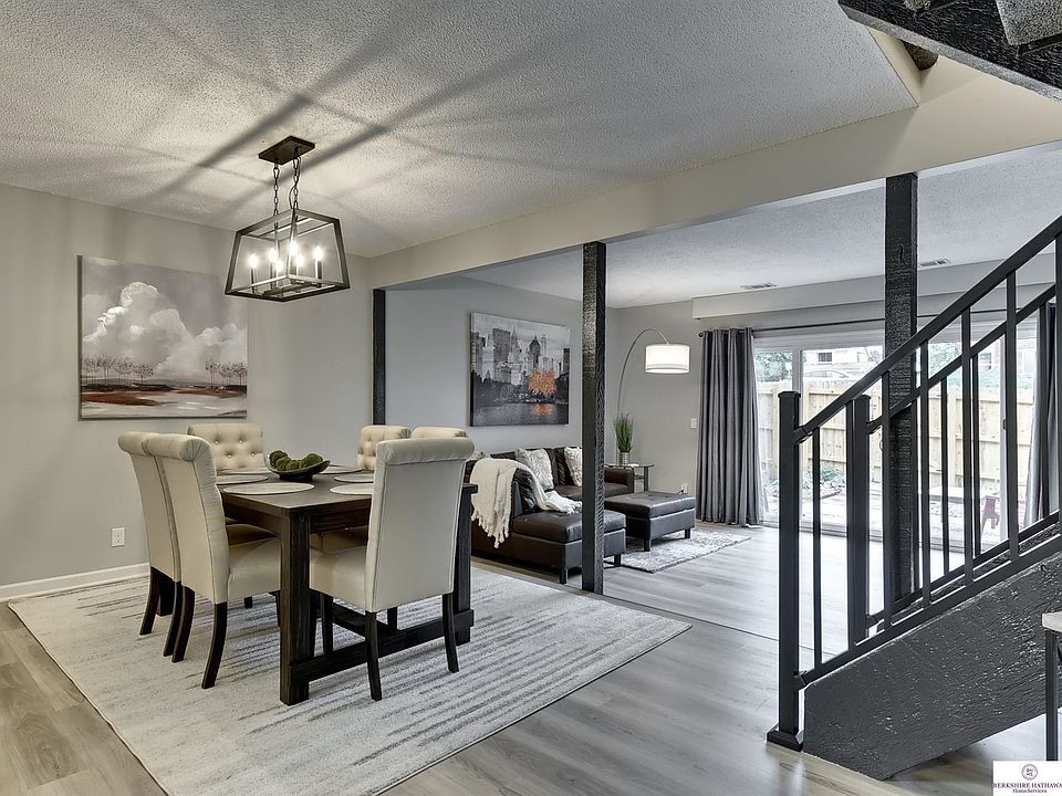 Gorgeous Townhome! Renovated in 2022. Enjoy Maintenance free living in this cozy townhome community in Millard. New SS appliances, spacious Dining area open plan! LVP on entire main level. Main level laundry 3 bedrooms upstairs, Primary bedroom w/ large walk in closet. Split sink bathrooms with quartz countertops, new plumbing fixtures, New Heat pump 2021, newer windows. All appliances stay including washer/dryer & refrigerator. Private fenced patio. Extremely energy efficient home - approx $105/month OPPD. No water bill! It is included in your hoa fee. Snow Removal & mowing included in the low monthly dues. Join The Meadows Pool, and enjoy a beautiful park, picnic area only half block away.