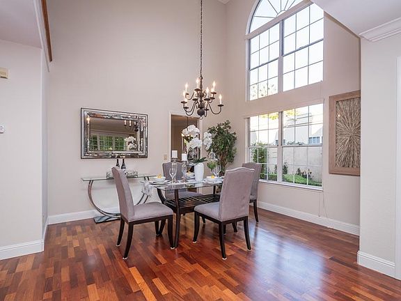 Glamour in Exclusive Enclave. Refined, romantic living is at your fingertips. Tucked inside the highly desirable Cuernavaca community, this 3 bedroom, 2.5 bath home of approx. 2,250 sq. ft. (per county) teems with features like an entry garden, a wet bar, art niches, and a gracefully curving staircase, coupling a luxurious ambience with fine functionality. Entertain in the double-height dining room, and enjoy two fireplaces, a private rear garden, and an attached two-car garage. A den may convert to a fourth bedroom. Within this enclave, you can access a variety of recreational options, including tennis courts, a fitness center, and pool and park areas. Stroll to popular shopping, fine dining, and Stevens Creek Trail.
