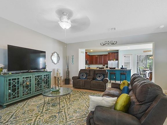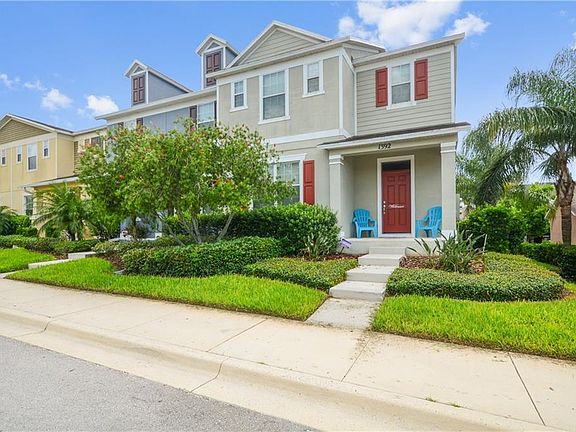Welcome Home! Contemporary, end unit 3 bed, 2.5 bath Townhome with great curb appeal! Take the steps up to the front porch and step inside to the spacious living room. The open, flowing floor plan, and high ceilings make this home light and bright! The open kitchen features 42" wood cabinets with crown moulding, SS appliances, pantry, dinette, and accented breakfast bar overlooking the family room. Owners can escape to their large Master Suite with private bath featuring his & hers sinks, step-in glass shower, and garden tub with tile accents. The other 2 rooms are also plenty spacious. The laundry area located upstairs provides extra convenience! Step outside to the back patio, where you can also access the detached 2-car garage. Community features large community pool, recreational facility, and park! Don't miss out on this opportunity! Welcome Home!