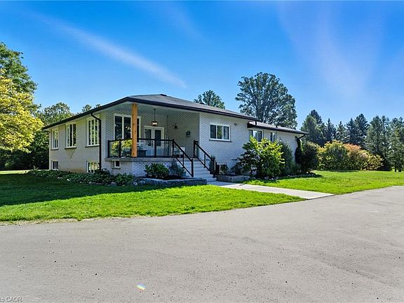 UNPARALLELED Privacy on 32 ACRES — A Rare Country Estate with Modern Comforts. Welcome to an extraordinary retreat offering breathtaking views and endless possibilities, combining refined living with the tranquility of nature. The expansive 5-bedroom bungalow showcases timeless design and light-filled spaces throughout, featuring a grand living room with floor-to-ceiling windows framing sweeping views of open fields and forest. The beautiful primary bedroom offers a private fireplace, a luxurious ensuite with a standalone tub & shower — a perfect sanctuary for relaxation. A walkout lower level provides equally impressive natural light and panoramic views, expanding your living and entertaining areas with a seamless indoor-outdoor connection. Step onto the large elevated deck and enjoy a serene, cottage-like ambiance — the ideal setting for gatherings or quiet moments in total seclusion. A spacious mudroom provides ample storage for every family’s needs, blending practicality with style. The 3-bedroom accessory apartment offers exceptional flexibility for extended family, guests, or a premium rental opportunity. For those seeking income potential, the property includes solar panels, selective forest logging, and approximately 10 acres of rentable farmland, creating a unique balance of lifestyle and investment. Nature enthusiasts will love the 1-acre pond, perfect for skating, fishing, or peaceful reflection, while acres of private forest with winding trails invite exploration. A 10’ x 20’ greenhouse, orchards, and raised garden boxes support a sustainable lifestyle. Thoughtful design continues with two 3-car garages, a newly paved asphalt driveway, and ample parking. Located in the sought-after town of Ayr, this estate offers small-town charm minutes from Cambridge, Brantford, KW, and Hwy 401 — providing effortless access wherever life takes you. Don’t miss this opportunity to own a one-of-a-kind home, where every day feels like a private getaway.