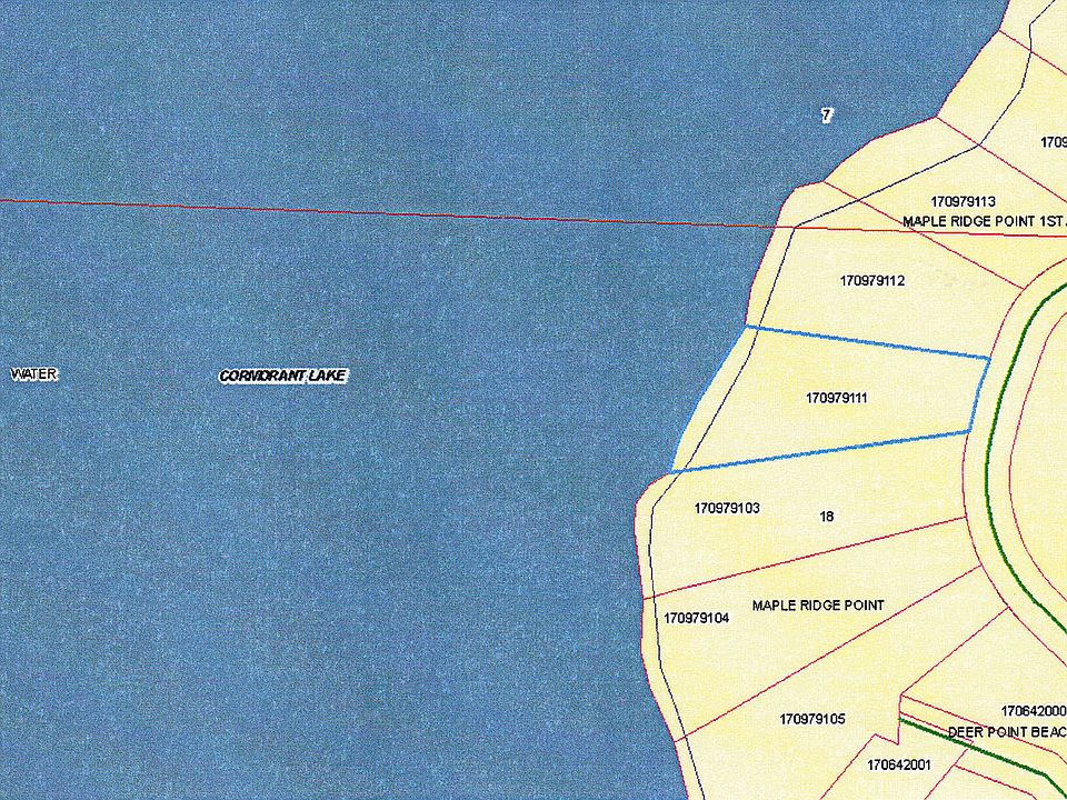 227 feet of lakeshore on Big Cormorant Lake with mature trees and 58,000 square feet.