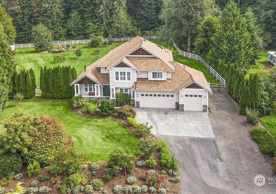 Welcome to this beautiful craftsman w/covered front porch, on fully fenced, gorgeous 1+ acre level lot.  This 4 bed/2.5 bath home has many features including office, breakfast nook and immaculate hardwood floors throughout main level.  Remodeled kitchen boasts double oven, large pantry + lots of cabinets and counter space. Primary has 5 piece en-suite, double vanity + his/hers closets (one is a walk-in).  Spacious family room w/gas fireplace and lots of windows for natural light.  Living room has gas stove and vaulted ceilings.  There are numerous fruit trees and blueberry bushes + electric fence. New roof in 2020/heat pump in 2022, 3 car garage & wired for generator.  Internet is Ziply fiber. All this 10 minutes from downtown Monroe.