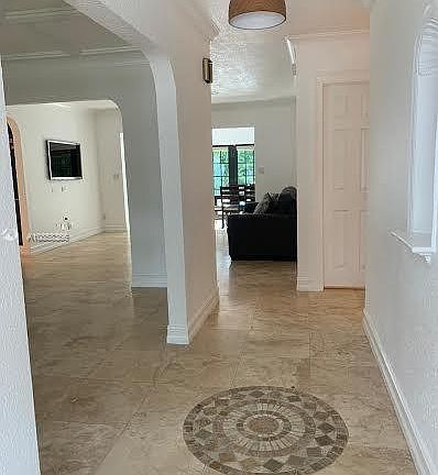 This home has been remodeled top to bottom. Impact doors/ windows. 2nd bath complete remodel w hi end steam shower. Custom Closets. Coffered living room ceilings. New master bedroom/bath addition. Large saturnia marble throughout, chef's kitchen with bui lt in oven, granite & stainless appliances with custom wood cabinets. Master bath to die for. Crown molding. Completely renovated pool/patio w/ tons of upgrades. Thousands spent in custom landscaping.Total living area 2209sqf. Custom fire pit. Home has two family rooms.