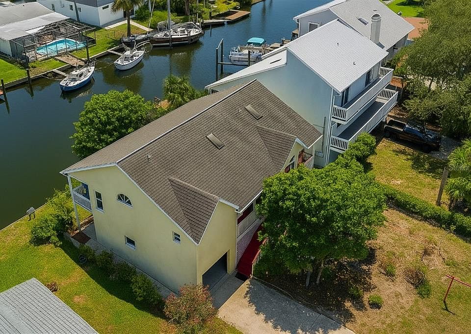 Waterfront dream. Unbeatable price. Vacation vibes — every single day. Why just visit the coast when you can live it? Welcome to this two-story concrete block residence with canal frontage, offering 4 bedrooms, 3 bathrooms, and a 1-car garage. With a total area of 3,795 sq ft, approximately 1,411 sq. ft. living space upstairs and additional 1,400 sq ft. on the ground floor laid out as the garage, bathroom, enclosed room and open space. See floorplan here—this home is designed for flexibility, whether you need space for a growing family, multi-generational living, or rental opportunities. Experience the charm of an authentic Old Florida fishing town, where friendly neighbors and a laid-back coastal vibe make every day feel like a vacation. Just down the street from Ollie's, Inn on the Gulf and Sam’s Restaurant on Hudson Beach, you can enjoy breathtaking sunsets over dinner, while shopping and additional dining options are only moments away. Don’t miss your chance to make this versatile canal-front home yours—schedule a showing today!
