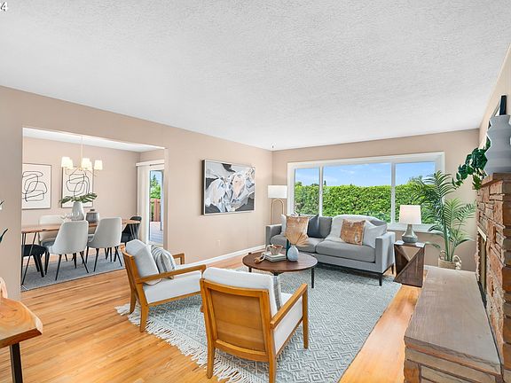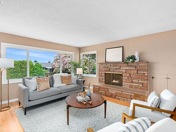 Welcome to Argay Terrace! This Mid-Century Modern neighborhood boasts pride of ownership and longtime residents. This modern beauty welcomes you in from the covered front porch to the formal entry. The living room lures you in towards the oversized windows and hardwood floors. A handsome Mid-Century Modern fireplace is the focal point of this room, inviting you to curl up on rainy evenings. On sunny days, light streams into the formal dining room through sliding doors that lead to a covered deck (perfect for al fresco dining!). The updated kitchen is nicely appointed and updated with solid surface counters, stainless appliances and a cozy breakfast nook. Access to the attached 2 car garage makes unloading groceries an cinch! Upstairs a primary suite with gorgeous hardwood floors, an oversized closet, and attached updated bathroom creates a peaceful retreat. Two additional bedrooms (also with hardwoods!) and an updated hall bath finish off this level. The daylight basement has a spacious family room, with yet another MCM fireplace, and sliders to the lower deck, that allow light to stream in and provide views of the lush backyard. A 4th bedroom and 3rd (updated!) bath, plus laundry area, complete this level. The sub basement bonus room awaits your vision to finish off and create whatever your heart desires (Media Room? Game Room? Craft Room? Storage?). The mechanical room on this level allows for even more storage options. All of this combined with a lovely landscaped backyard and an expansive 2 level deck, that spans the entire back of the home, make this an exquisite home in a sought after neighborhood. Lovingly cared for with newer windows and new roof (2024). Walkable to two neighborhood parks (Argay Park and Luuwit View Park) and easy access to PDX, Cascade Station shopping/restaurants, IKEA and more! You could live here!